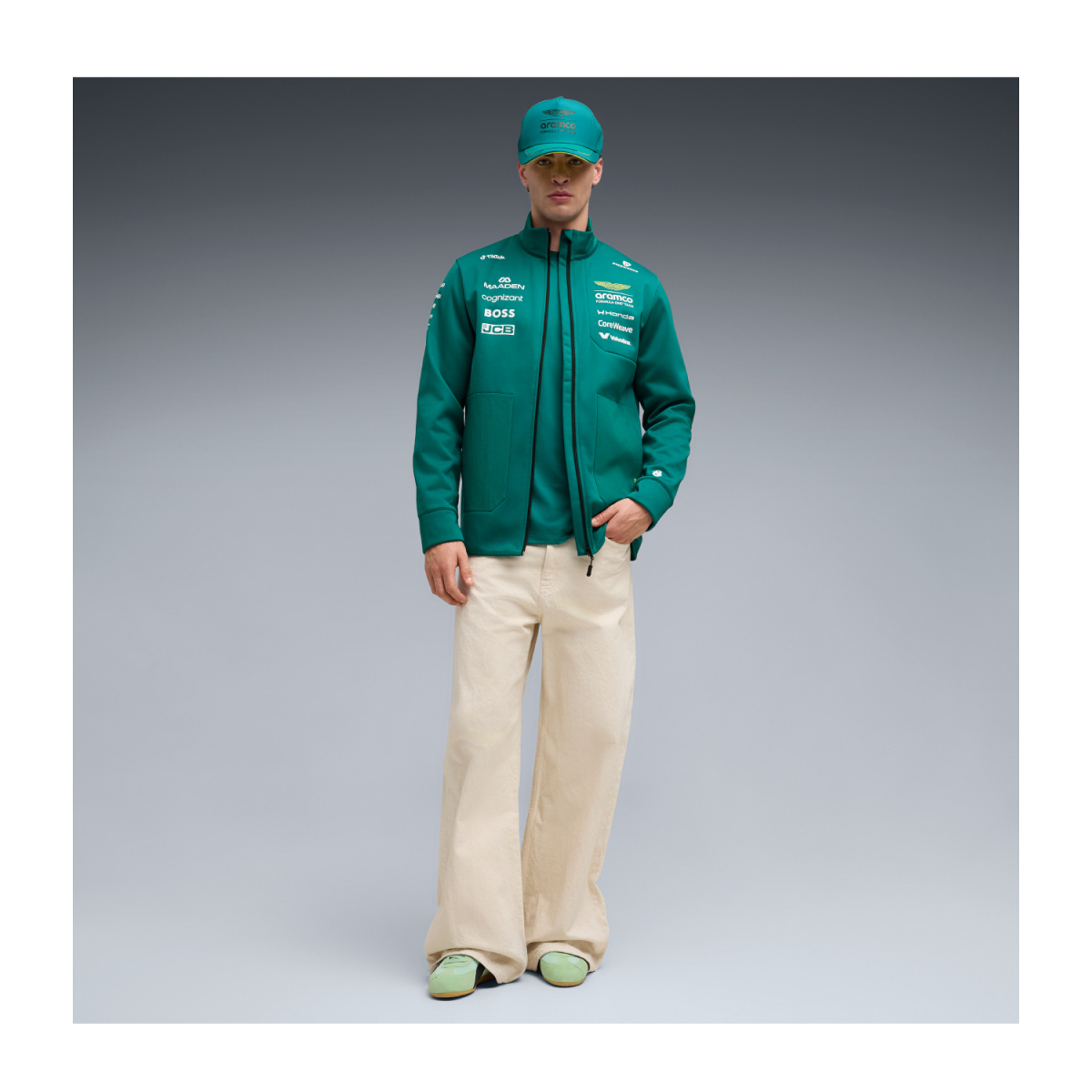Aston Martin pánská bunda softshell green official Teamline Replica F1 Team 2026
