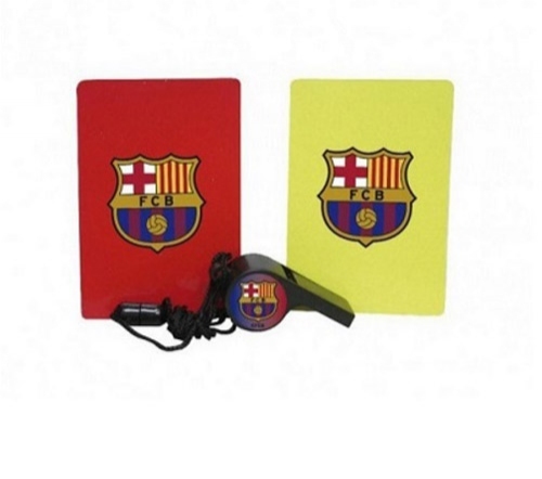 Zábavná sada pro mladé fotbalové rozhodčí, která obsahuje červenou a žlutou kartu a píšťalku pro rozhodčí, zdobené znakem slavného fotbalového klubu Barcelona. Dodá amatérskym zápasům pocit profesionality a potěší každého fanouška.