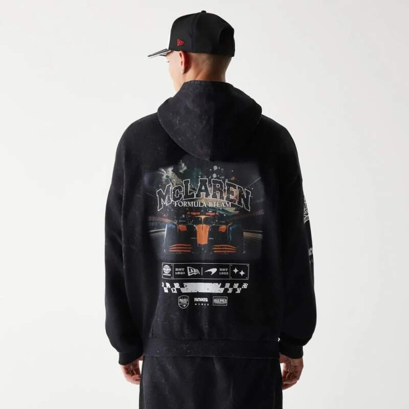 Mclaren Honda pánská mikina s kapucí zip GRPHC washed black F1 Team 2026