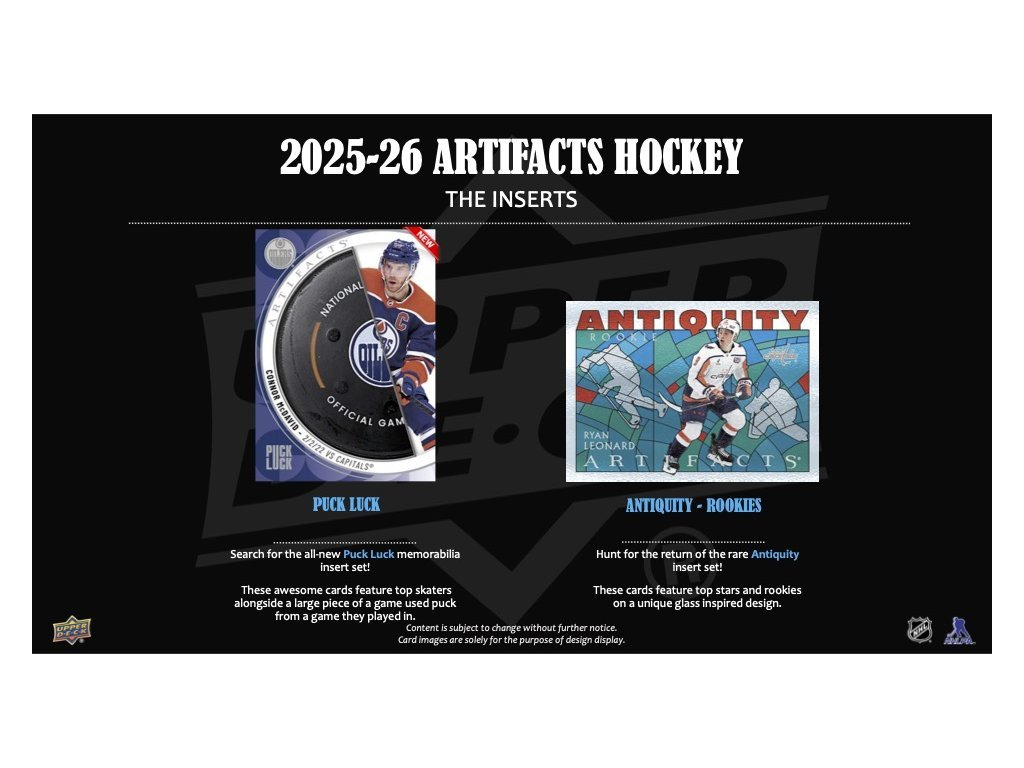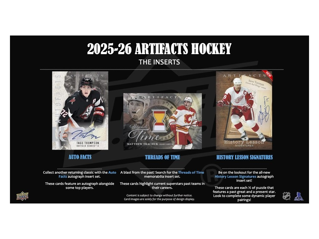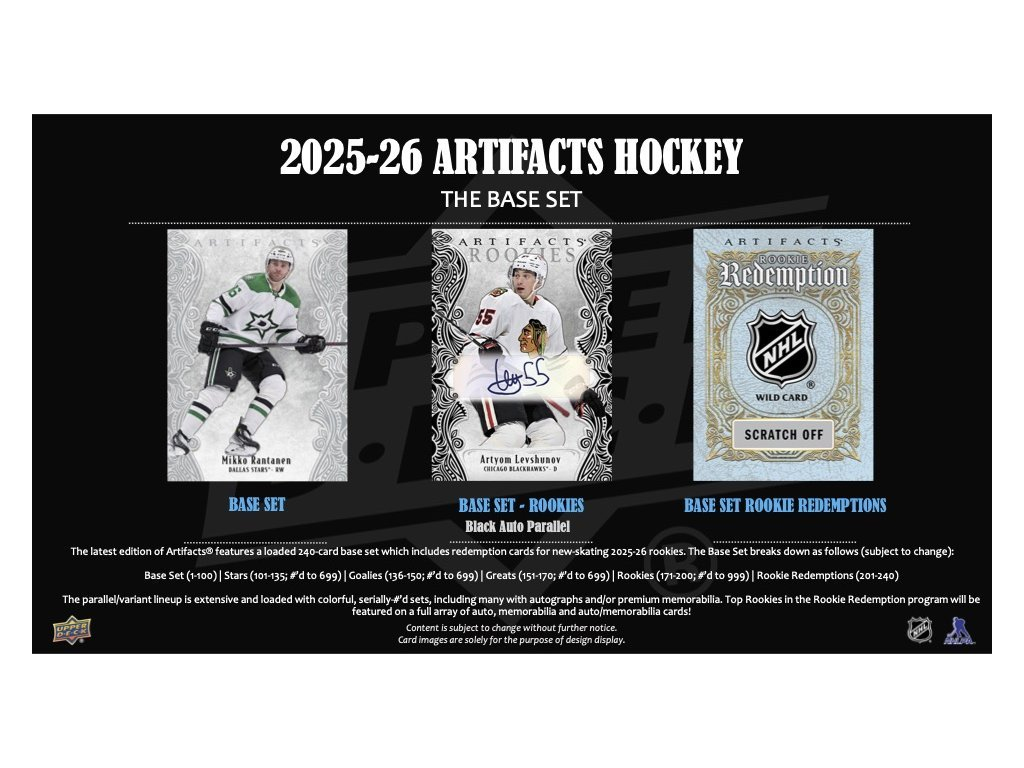Nejnovější edice Artifacts® nabízí nabitý 240-kartový základní set, který zahrnuje také redemption karty nováčků ročníku 2025-26.
